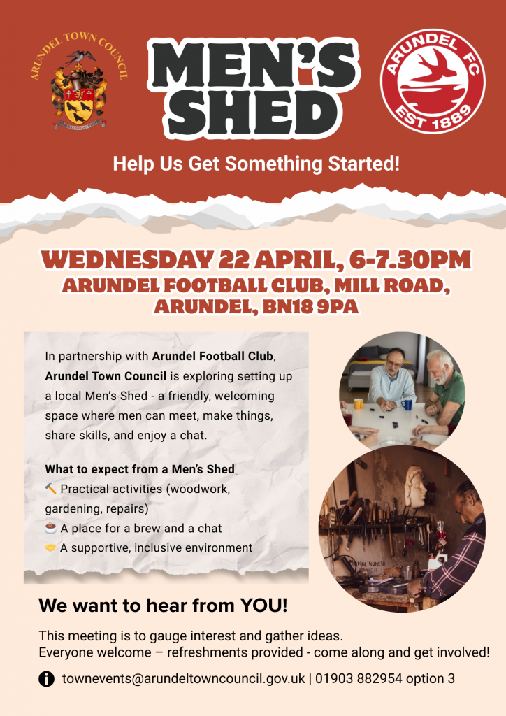 Arundel Town Council is exploring the idea of setting up a Men’s Shed in Arundel – and we’d love to hear from you.