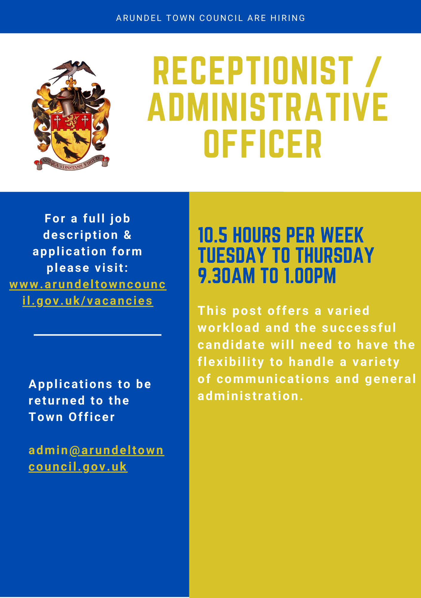 We’d love you to join our small but friendly team at the Town Hall.